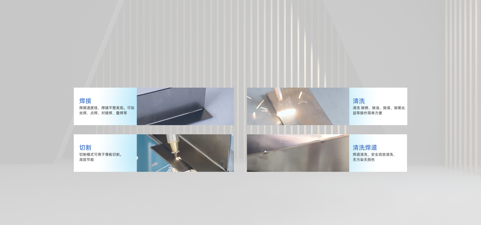集焊接、清洗、切割和清洗焊道功能于一體,功能強大、一機四用。