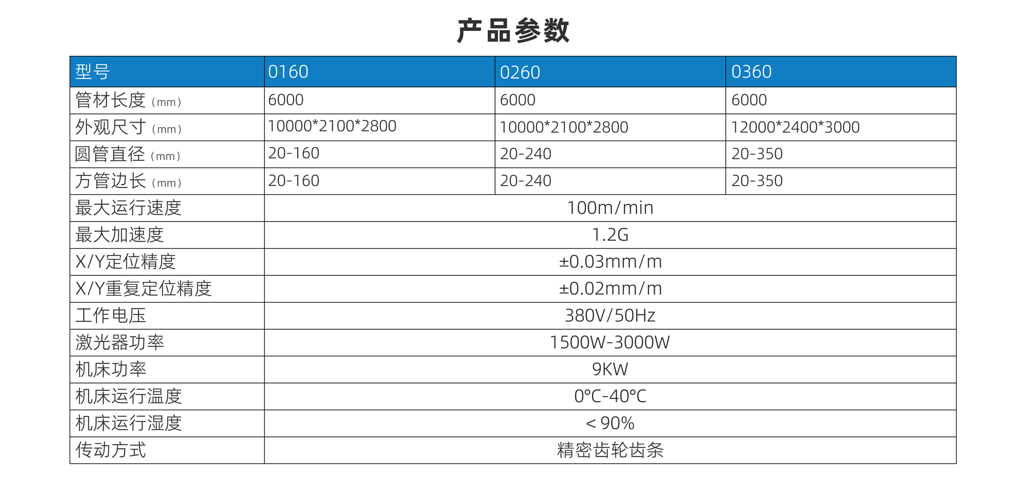管材直徑(mm) 圓管Φ20-Φ160 圓管Φ20-Φ240 圓管Φ20-Φ350