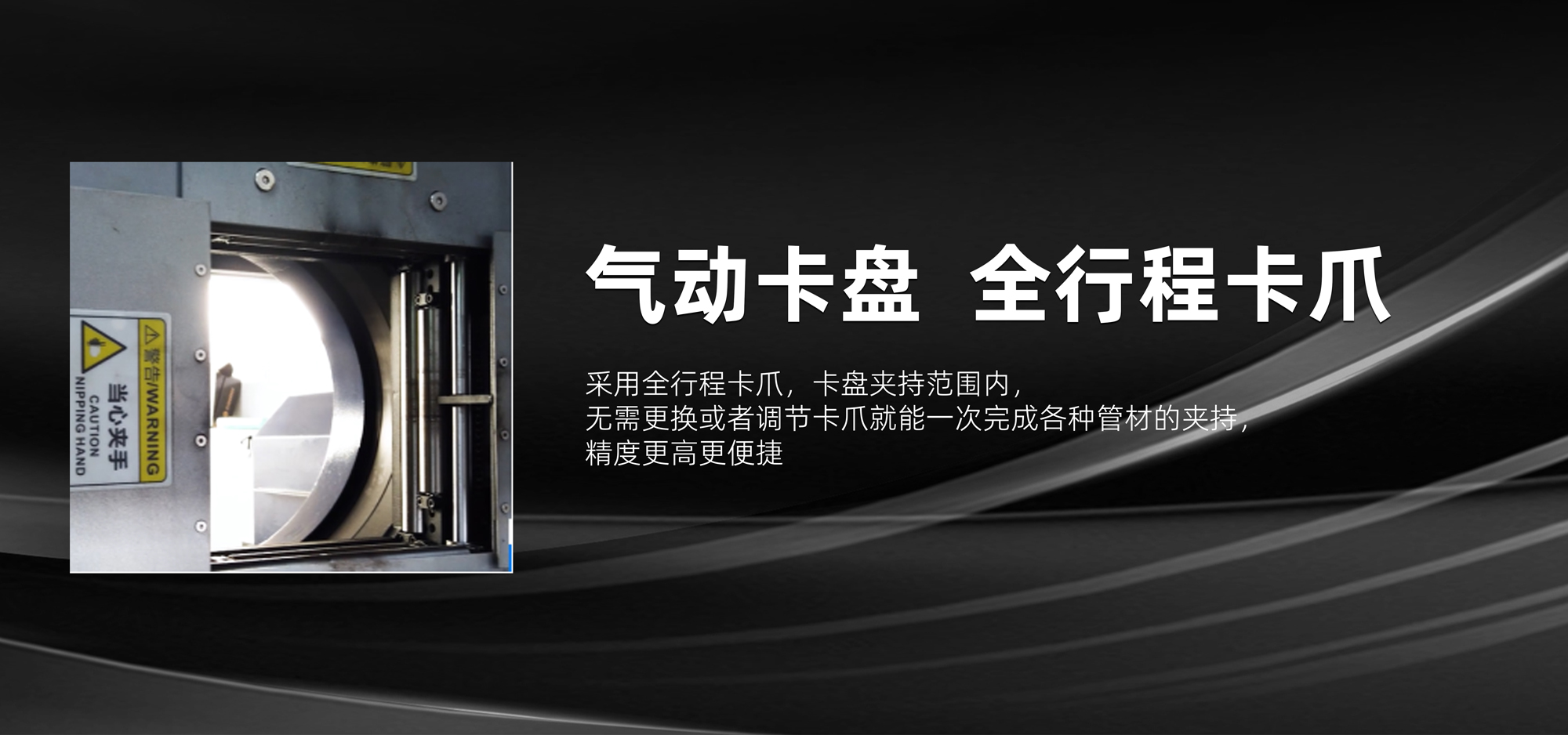 自定心氣動卡盤,帶有薄管保護限位,保證薄管裝夾無損
